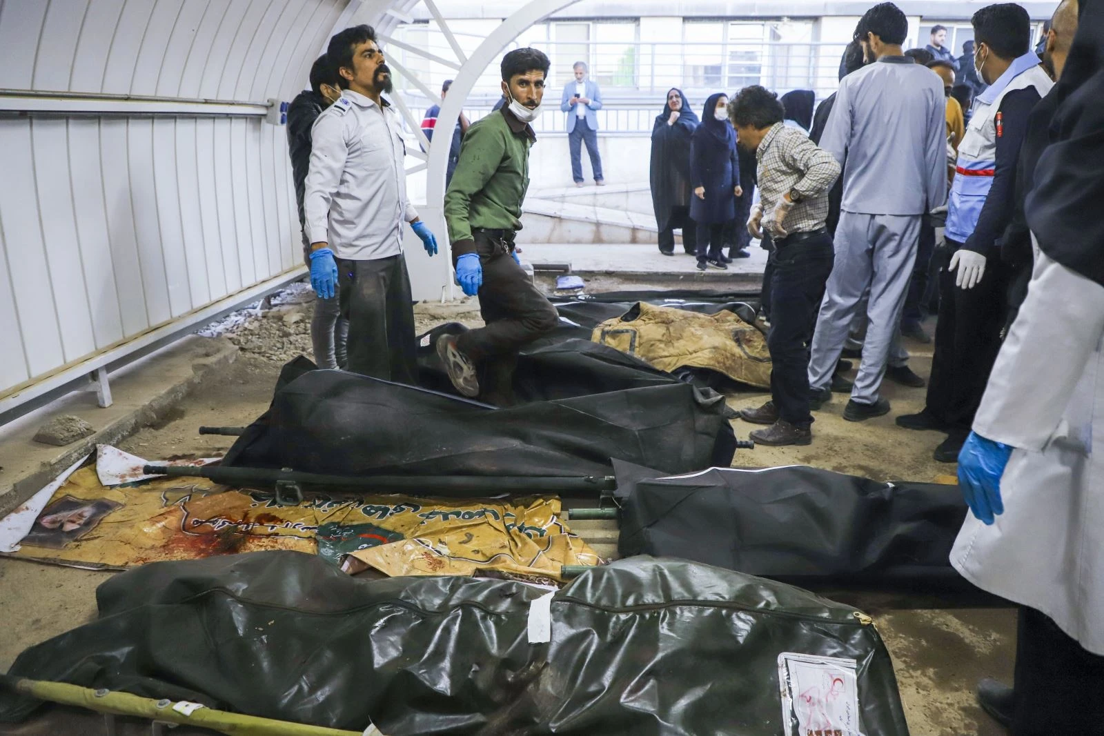 Thi thể các nạn nhân trong vụ nổ tại lễ tưởng niệm chỉ huy cấp cao Lực lượng Vệ binh Cách mạng Hồi giáo Iran (IRGC) ở thành phố Kerman, ngày 3/1/2024. Ảnh: AFP/TTXVN