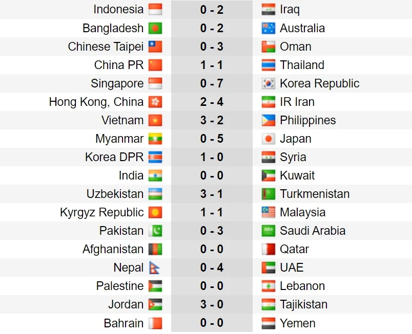 Kết quả lượt trận 5 vòng loại thứ 2 World Cup 2026 khu vực châu Á.