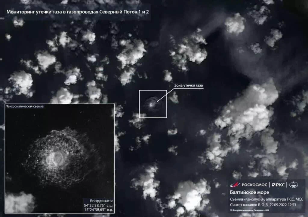 Ảnh vệ tinh cho thấy vụ nổ khí đốt từ đường ống Nord Stream 1 trên biển Baltic.