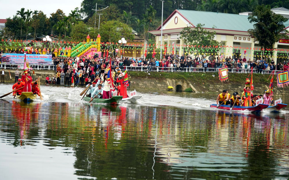 Sôi nổi phần đua thuyền của 4 tổ dân phố phường Nam Cường.