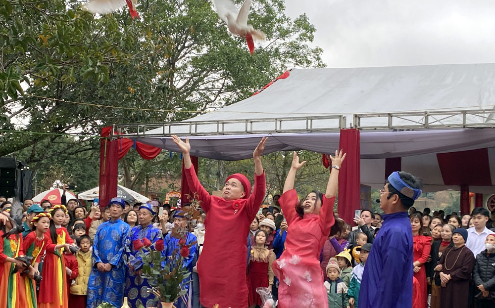 Mở đầu nghi lễ rước lễ, dâng hương Thánh Mẫu Linh Từ, lễ thả chim cầu bình an được tổ chức trang nghiêm, mang đậm bản sắc văn hóa truyền thống của vùng đất Nam Cường. Gia đình được các cụ cao niên chọn để làm lễ thả chim phải đủ điều kiện khỏe mạnh, hạnh phúc làm ăn phát đạt, con cháu ngoan hiền, học hành đỗ đạt. Cùng với đó, 12 con chim bồ câu cũng được thả với mong ước 12 tháng trong năm nhân dân đều được bình an, hạnh phúc.
