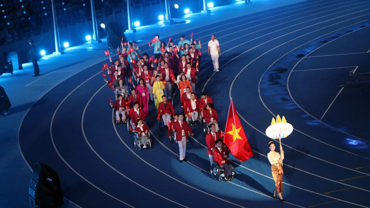 Đoàn thể thao người khyết tật Việt Nam tại lễ khai mạc.