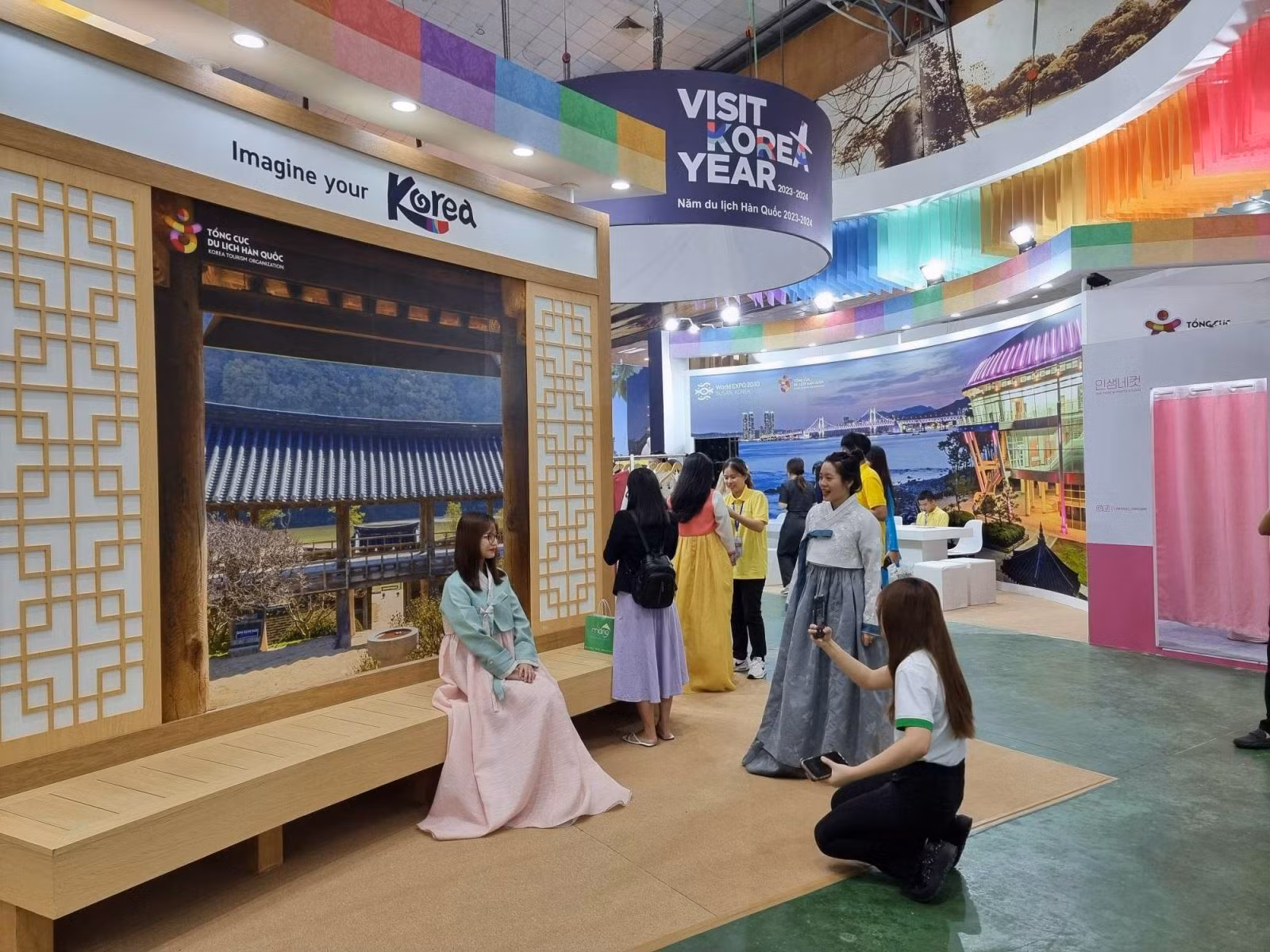 Du khách check-in tại các gian hàng hội chợ.