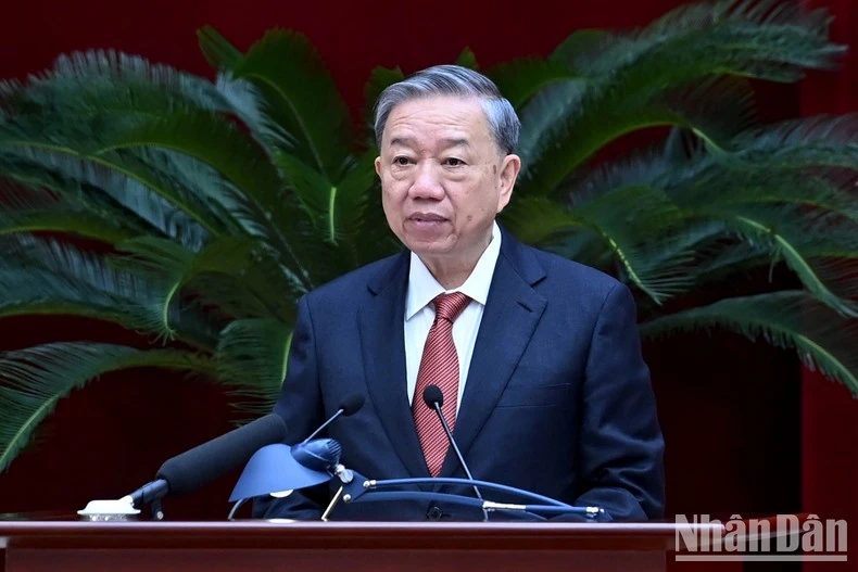 Về phương hướng, giải pháp chiến lược, Tổng Bí thư, Chủ tịch nước Tô Lâm lưu ý: “Tập trung hoàn thiện quan hệ sản xuất, trọng tâm là tinh gọn bộ máy tổ chức Đảng, Nhà nước, Quốc hội, các tổ chức chính tri-xã hội để hoạt động hiệu lực, hiệu quả; đổi mới phương thức lãnh đạo, cầm quyền của Đảng để đưa dân tộc ta tiến lên. Đẩy mạnh phân cấp, phân quyền với phương châm “địa phương quyết, địa phương làm, địa phương chịu trách nhiệm”, Trung ương, Chính phủ, Quốc hội tăng cường hoàn thiện thể chế, giữ vai trò kiến tạo và tăng cường kiểm tra, giám sát. Đồng thời, cải cách triệt để thủ tục hành chính; khơi dậy động lực, tinh thần cống hiến vì đất nước, khơi thông mọi nguồn lực xã hội, nguồn lực trong nhân dân; đẩy mạnh chuyển đổi số, chuyển đổi xanh, lấy khoa học công nghệ, đổi mới sáng tạo làm động lực chính cho phát triển, có cơ chế tập trung định hướng vào công nghệ, nhất là công nghệ nguồn, công nghệ lõi...; phát triển phải có trọng tâm, trọng điểm, không dàn trải; chủ động tích cực tranh thủ các nguồn lực bên ngoài, kết hợp sức mạnh dân tộc với sức mạnh của thời đại”.