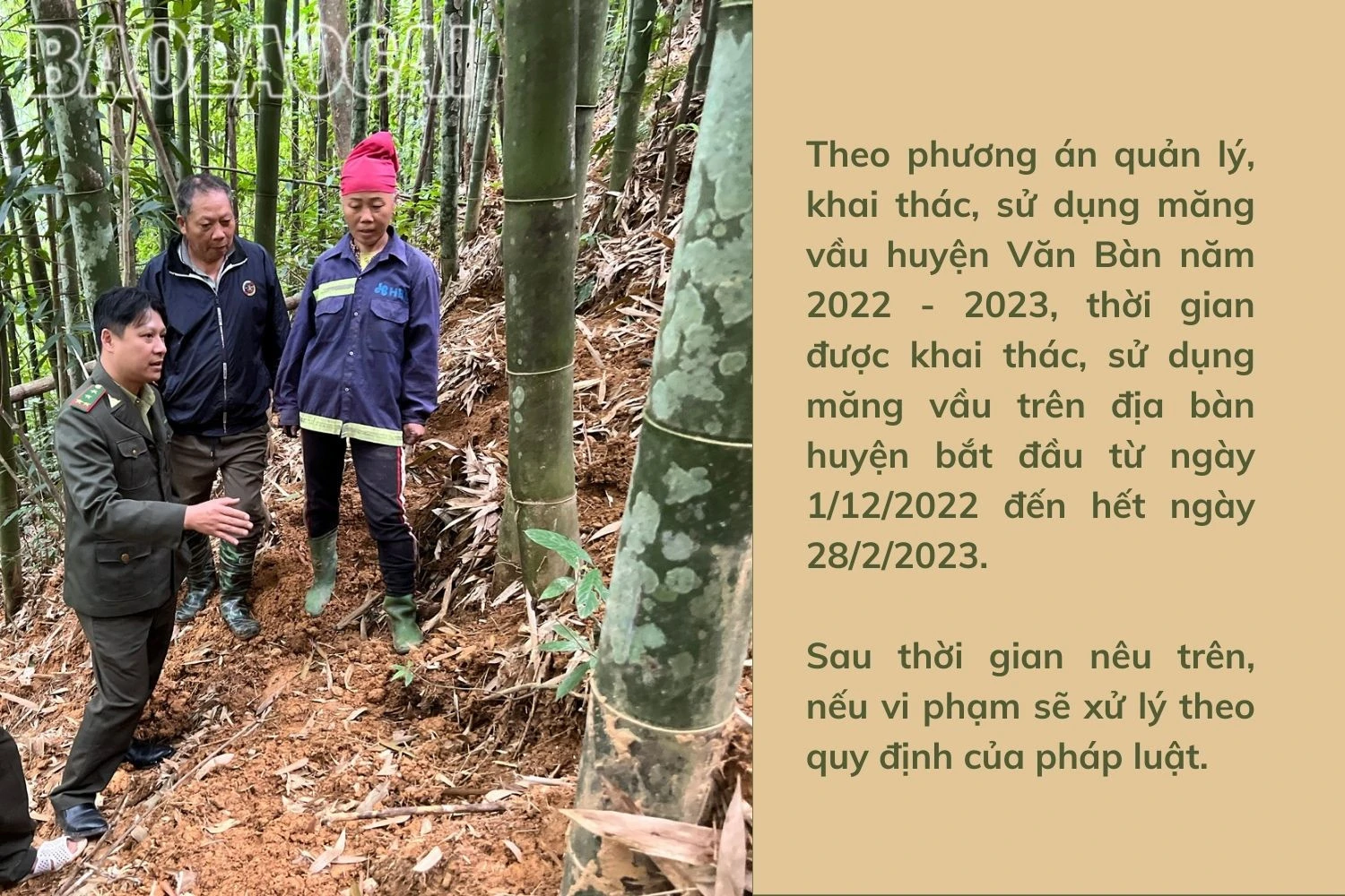 Tuy nhiên, một thời gian dài, việc khai thác măng diễn ra ồ ạt, không có quy chế cụ thể, khiến suy giảm sản lượng măng, ảnh hưởng đến hệ sinh thái tự nhiên. Trước những bất cập trên, năm 2018, huyện Văn Bàn đã xây dựng phương án quản lý, khai thác, sử dụng măng vầu bền vững. Theo phương án quản lý, khai thác, sử dụng măng vầu huyện Văn Bàn năm 2022 - 2023, thời gian được khai thác, sử dụng măng vầu trên địa bàn huyện bắt đầu từ ngày 1/12/2022 đến hết ngày 28/2/2023. Sau thời gian trên, nếu vi phạm sẽ xử lý theo quy định của pháp luật.