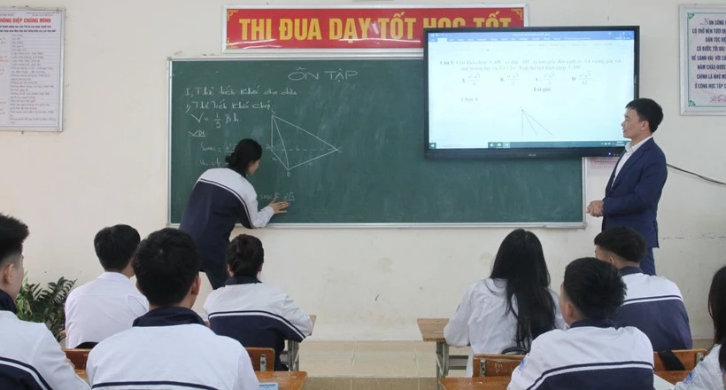 Học sinh Trường THPT Minh Quang (Hà Nội) học toán với sự hỗ trợ của bảng tương tác.
