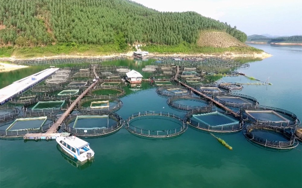 Mô hình nuôi cá lồng trên hồ Thác Bà.