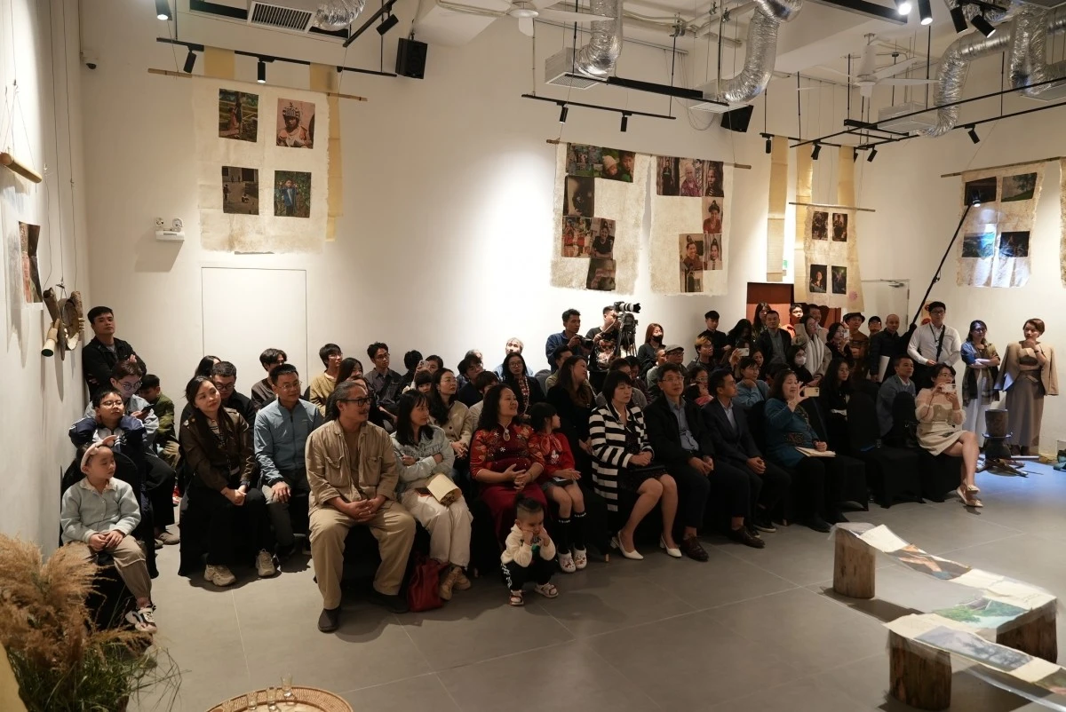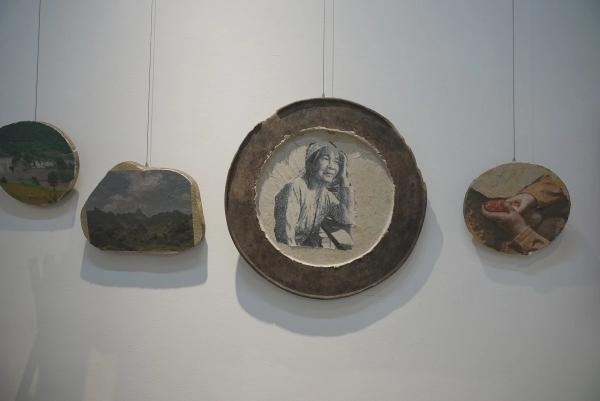 Nhiếp ảnh gia, đạo diễn Nguyễn Thanh Tuấn cho biết: “Trong quá trình 10 năm đấy, mình phát hiện ra có rất nhiều nông cụ, những loại đạo cụ, vật dụng trong đời sống hằng ngày của bà con Tây Bắc. Nó có tính tượng hình rất cao, chẳng hạn như một chiếc mâm mây của người Thái cũng hoàn toàn có thể mình đưa tác phẩm nhiếp ảnh lên trên lòng của mâm này để treo. Vì bà con có một thói quen treo bếp trên tường hoặc những chiếc khăn piêu, là một di sản của cộng đồng người Thái rất ý nghĩa. Tôi mang đến một ý tưởng là mình sẽ sắp đặt và sử dụng các loại khung đa dạng chứ không đóng khung theo cách thông thường bằng hình vuông, hình chữ nhật gì đó mà lồng kính. Giấy dó có một đặc điểm là độ xuyên sáng rất tốt khi mình kết hợp ánh sáng nữa, thể hiện ở bề mặt và mọi người có thể chạm tay vào để trải nghiệm".