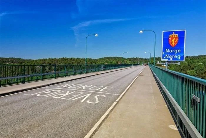 Cầu Svinesund trải dài từ Strömstad, Thụy Điển đến Halden, Na Uy. Nó thậm chí còn có một vạch cụ thể trên cầu để cho bạn biết khi nào đã sang nước khác