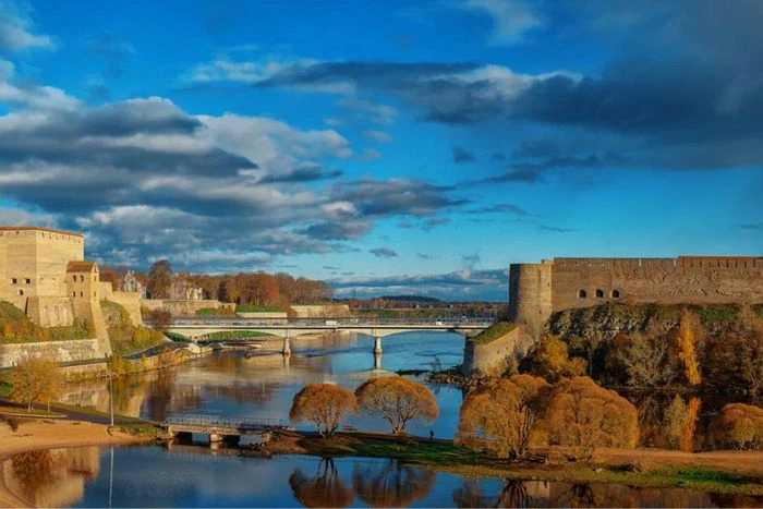 Lâu đài Hermann của Estonia và pháo đài Ivangorod thuộc Nga bị ngăn cách bởi sông Narva, tạo thành biên giới giữa hai nước.
