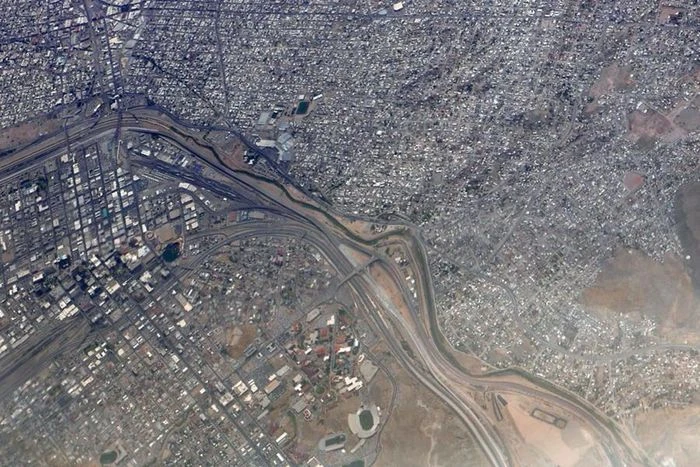 Một bức ảnh chụp từ trên cao biên giới Mỹ - Mexico cho thấy sự khác biệt rõ ràng giữa cơ sở hạ tầng của hai nước. Đường biên giới này dài 3.145 km dọc miền Nam nước Mỹ