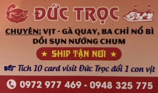 Đặc biệt, để tri ân khách hàng, quán Đức Trọc còn có chương trình khuyến mãi là khách hàng mua 10 con vịt quay sẽ được quán tặng 1 con vịt.