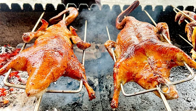 Các món vịt quay, gà quay được chủ quán ướp gia vị theo bí quyết riêng rồi đem quay bằng lò chuyên dụng, tạo nên món ăn thấm đẫm gia vị, có lớp da khô giòn nhưng vẫn đảm bảo độ dai ngon, thơm, ngọt.