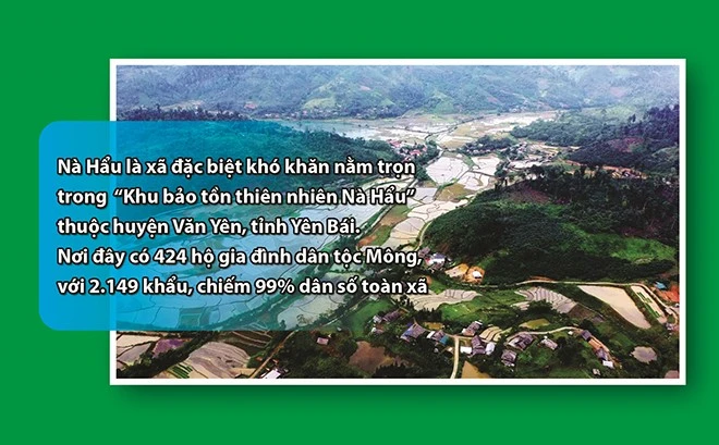 Nằm cách trung tâm huyện Văn Yên chừng 30km, Nà Hẩu hôm nay vẫn là xã đặc biệt khó khăn. Từ trung tâm huyện đến xã mất khoảng một tiếng rưỡi đi ô tô vì đường rất xấu, quanh co, đèo dốc, càng đi càng lên cao, xuyên qua những cánh rừng quế, rừng tự nhiên của hai xã ở thấp hơn là An Thịnh và Đại Sơn.