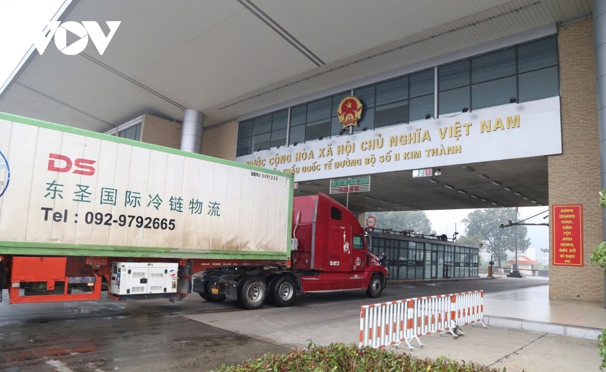 Những chuyến xe hàng đầu tiên của năm Bính Ngọ thông quan qua cửa khẩu Kim Thành.