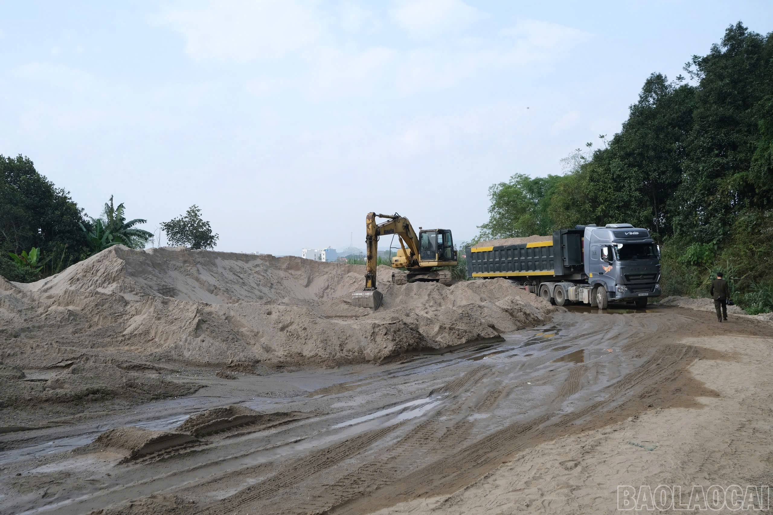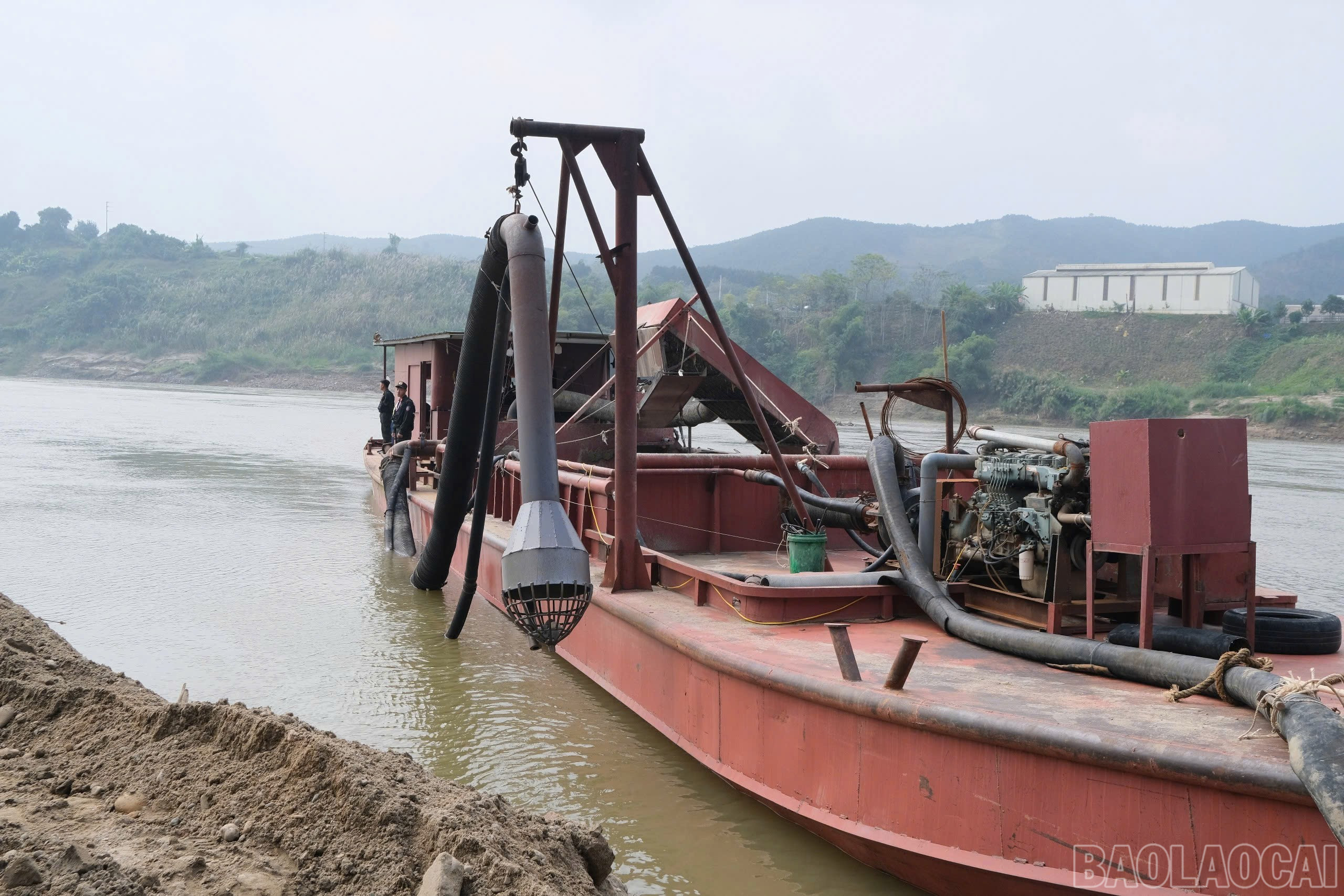Các đối tượng đã sử dụng 4 tàu chuyên dụng thường xuyên khai thác cát và tập kết tại 3 bãi, sau đó đưa đi tiêu thụ tại địa bàn tỉnh Lào Cai và một số tỉnh khác bằng đường bộ và đường thuỷ. Vị trí khai thác cát đều nằm ngoài tọa độ được cấp phép.