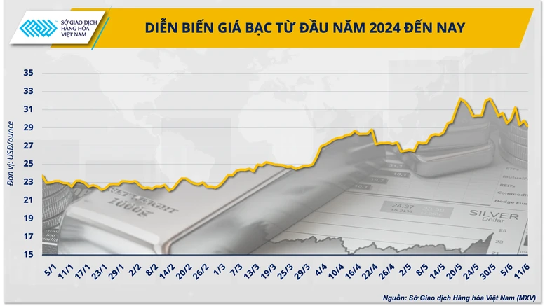Nửa đầu năm 2024 đã chứng kiến một giai đoạn bùng nổ trên thị trường kim loại quý khi các nhà đầu tư hướng sự chú ý vào những bước đi của Fed, đặc biệt trong bối cảnh lạm phát tại Mỹ đang có dấu hiệu hạ nhiệt. Theo dữ liệu từ Sở Giao dịch hàng hóa Việt Nam (MXV), vượt qua tốc độ tăng của giá vàng, giá bạc đã tăng hơn 25% kể từ đầu năm.