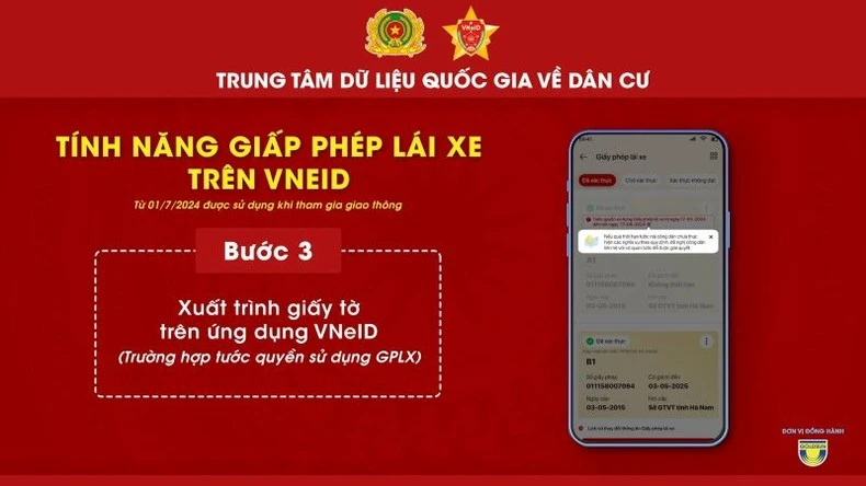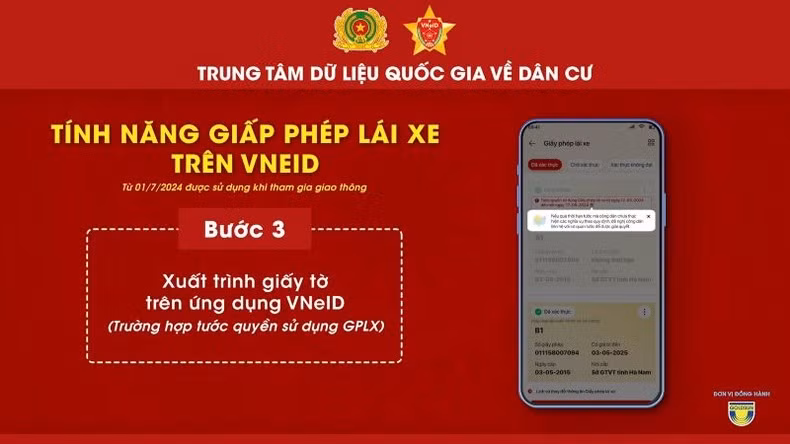 Cụ thể: trường hợp người điều khiển phương tiện, chủ phương tiện xuất trình thông tin của các giấy tờ đã được tích hợp, cập nhật trong căn cước điện tử, tài khoản định danh điện tử trên Ứng dụng định danh quốc gia (VNeID), trong cơ sở dữ liệu do Bộ Công an quản lý thì thực hiện việc kiểm tra, kiểm soát thông qua thông tin trong căn cước điện tử, tài khoản định danh điện tử trên Ứng dụng định danh quốc gia, cơ sở dữ liệu.