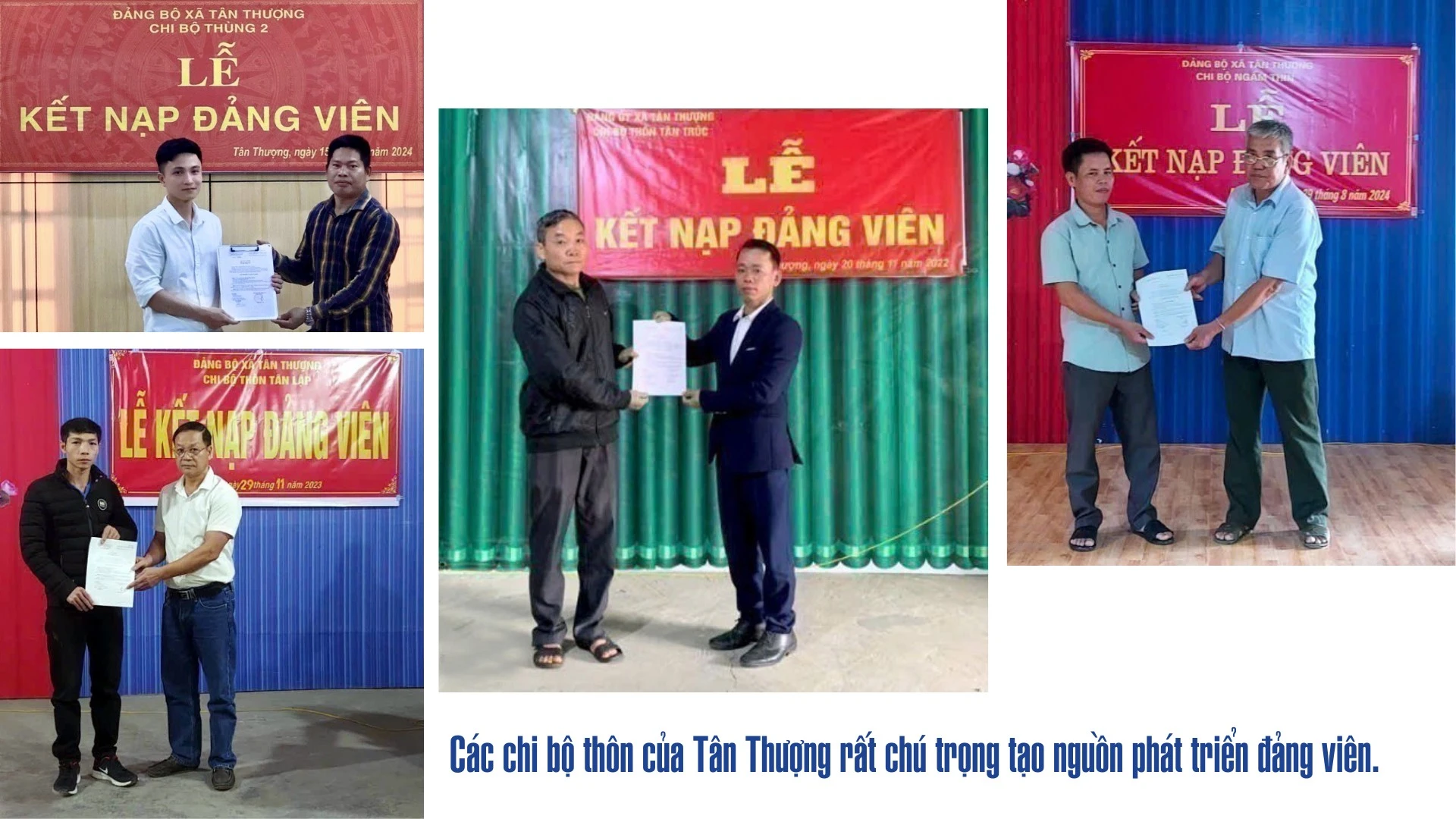 Đảng bộ xã Tân Thượng có 14 chi bộ trực thuộc (trong đó có 8 chi bộ nông thôn), với 206 đảng viên. Giải quyết khó khăn chung của các tổ chức đảng khu vực nông thôn trong việc tạo nguồn phát triển đảng viên, Đảng bộ xã Tân Thượng luôn có sự chủ động, linh hoạt. Đầu tiên, đặt mục tiêu kết nạp đảng viên cho mỗi năm cũng như cho cả nhiệm kỳ bằng con số cụ thể. Theo ông Ngô Quang Phú, Bí thư Đảng ủy xã, tổng kết năm hoặc đánh giá giữa nhiệm kỳ, Đảng ủy xã sẽ xác định được kết quả, tiến độ thực hiện với tỷ lệ chính xác, từ đó có những điều chỉnh phù hợp; phát huy ưu điểm, khắc phục hạn chế, yếu kém, có chủ trương, biện pháp nhắc nhở, đôn đốc những chi bộ, tổ chức đoàn thể thực hiện chưa tốt nhiệm vụ phát triển đảng viên, nhất là phát triển đảng viên trong đoàn viên, thanh niên, đảng viên nữ, đảng viên người dân tộc thiểu số...