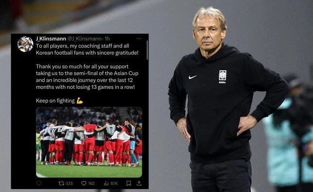 Nhưng ông lại không tính trận bán kết thua Jordan vào danh sách này. Bên cạnh đó, Klinsmann lại khóa bình luận trên trang cá nhân, một động thái cho thấy rằng ông lường trước được sẽ bị "ném đá" vì những lời chia tay của mình. Lúc này, Klinsmann sẽ thông qua người đại diện bàn về tiền đền bù với KFA (khoảng 5 triệu USD).