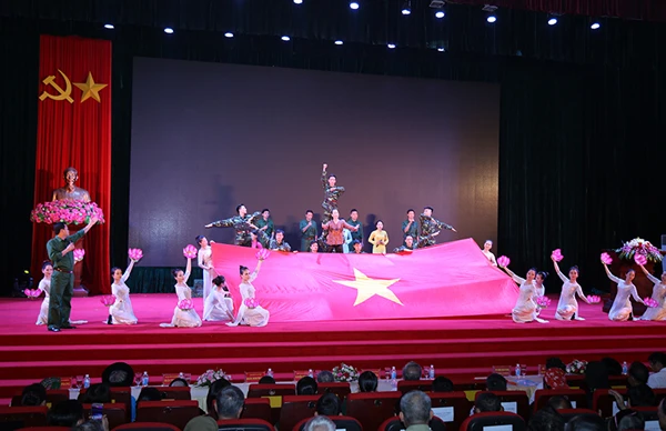 Trước đó, cán bộ, diễn viên Đoàn Nghệ thuật Dân tộc tỉnh đã đem đến Lễ kỷ niệm chương trình nghệ thuật đặc sắc thể hiện sự hào hùng, tráng ca, tri ân tới các chiến sỹ đã hy sinh xương máu vì nền độc lập của dân tộc (Ảnh dưới).