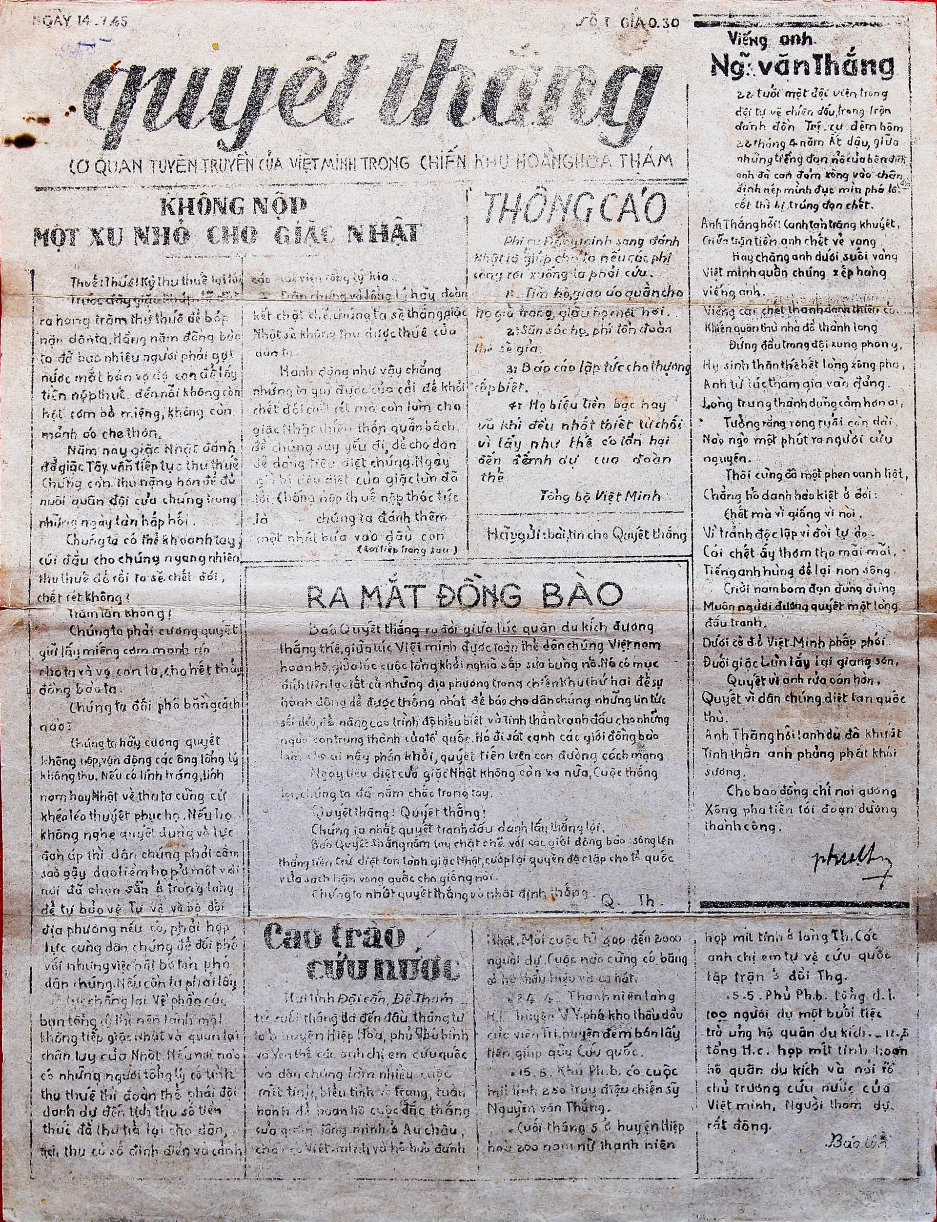 Quyết thắng - tờ báo của Việt Minh chiến khu Hoàng Hoa Thám