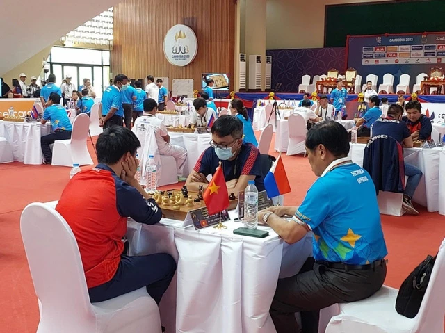 Cờ Ouk chaktrang (hay còn gọi là cờ cờ ốc) là môn thi đầu tiên mà các VĐV Việt Nam tham gia tranh tài. Trong ngày 29/4, 6 kỳ thủ của Việt Nam thi đấu ở 2 nội dung gồm cờ nhanh cá nhân nam và cờ tiêu chuẩn 4 nhóm nam.