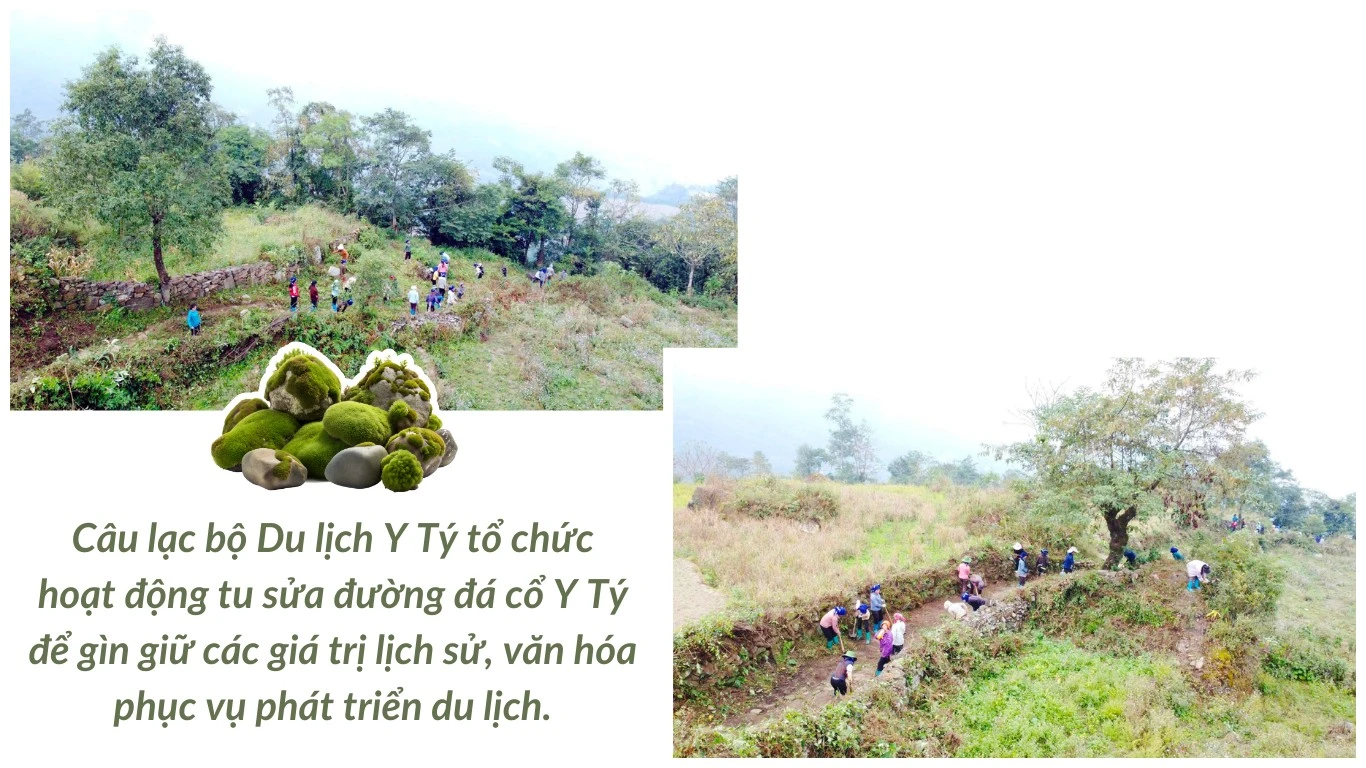 Trong chuyến trở lại Y Tý lần này, tôi gặp một số bạn trẻ có chung niềm đam mê phát triển du lịch cộng đồng ở Y Tý, xây dựng Câu lạc bộ Du lịch Y Tý cách đây không lâu. Trong câu chuyện về phát triển du lịch Y Tý, nhắc đến đường đá cổ, tôi không khỏi bất ngờ khi biết từ giữa tháng 11 năm nay, Câu lạc bộ Du lịch Y Tý đã đứng ra tổ chức tu sửa, khôi phục đường đá cổ, góp phần hồi sinh tuyến đường trăm tuổi, giúp du khách khám vẻ đẹp của vùng đất này.