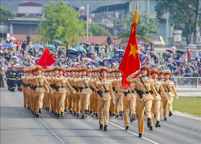 Ngoài các khối Quân đội đã tiến hành hợp luyện lần đầu tại Điện Biên vào sáng 26/4, trong sáng nay, nhiều khối diễu binh, diễu hành mới của lực lượng Công an đã chính thức xuất hiện như: Khối nữ chiến sỹ Cảnh sát đặc nhiệm; Khối Cảnh sát cơ động Kỵ binh; Khối nữ sĩ quan Cảnh sát giao thông...