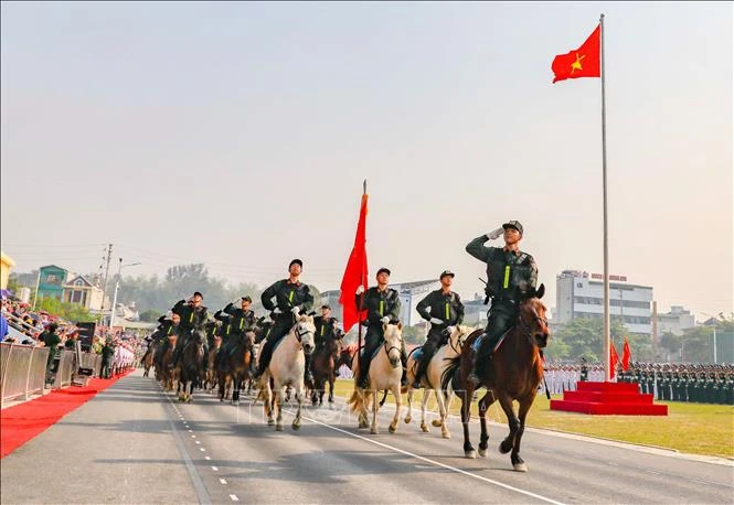Khối Cảnh sát cơ động kỵ binh hợp luyện đi qua khán đài. Ảnh: Xuân Tư/TTXVN
