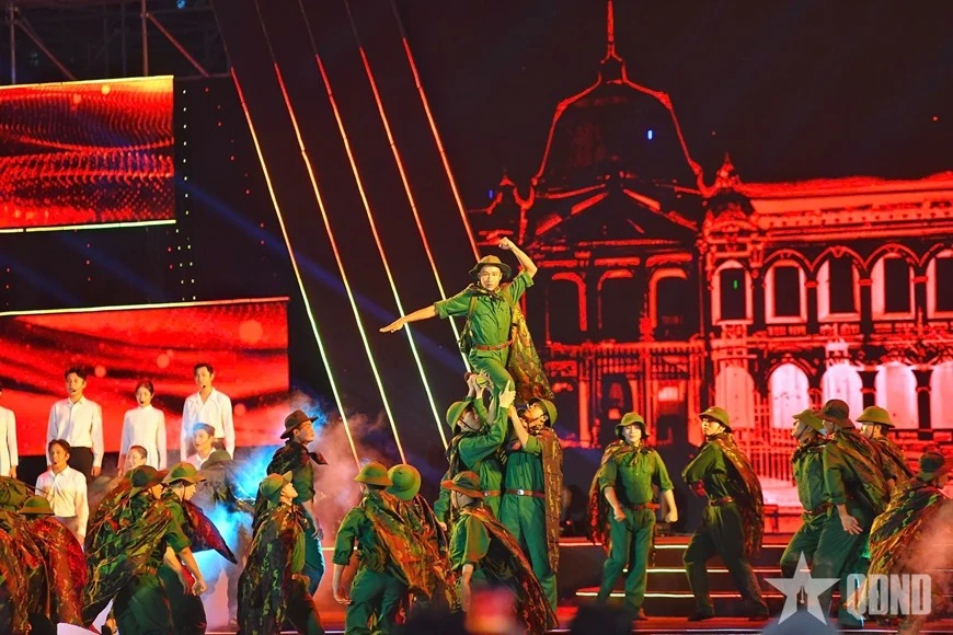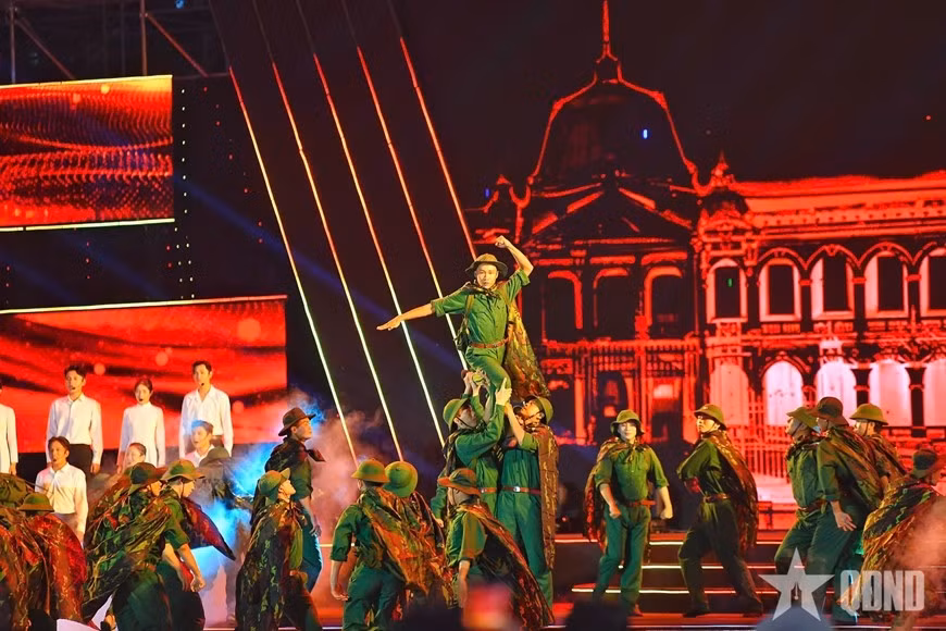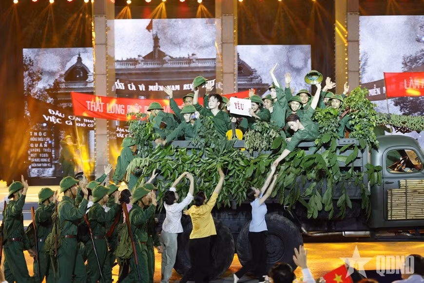 Chương mở đầu với thông điệp về “Khát vọng hòa bình”. Đó là những thước phim tư liệu quý giá tái hiện bối cảnh lịch sử đau thương nhưng kiên cường, khi cả dân tộc buộc phải cầm súng để bảo vệ độc lập. Các tiết mục nghệ thuật đậm chất sử thi, từ những làn điệu dân ca đến hòa tấu đương đại, khắc họa sâu sắc ý chí bất khuất của dân tộc. Ở chương 2 “Ý chí độc lập, thống nhất” điểm lại những dấu mốc lịch sử làm thay đổi cục diện chiến tranh, tái hiện sống động từng khoảnh khắc, đưa người xem trở lại thời khắc lịch sử trọng đại. Trong chương 3 “Ta tự hào đi lên, ơi Việt Nam”, đó là những thông điệp từ bài học lịch sử được kết nối với thành tựu đất nước hôm nay, khẳng định tầm vóc của sự kiện trong hành trình phát triển đất nước.