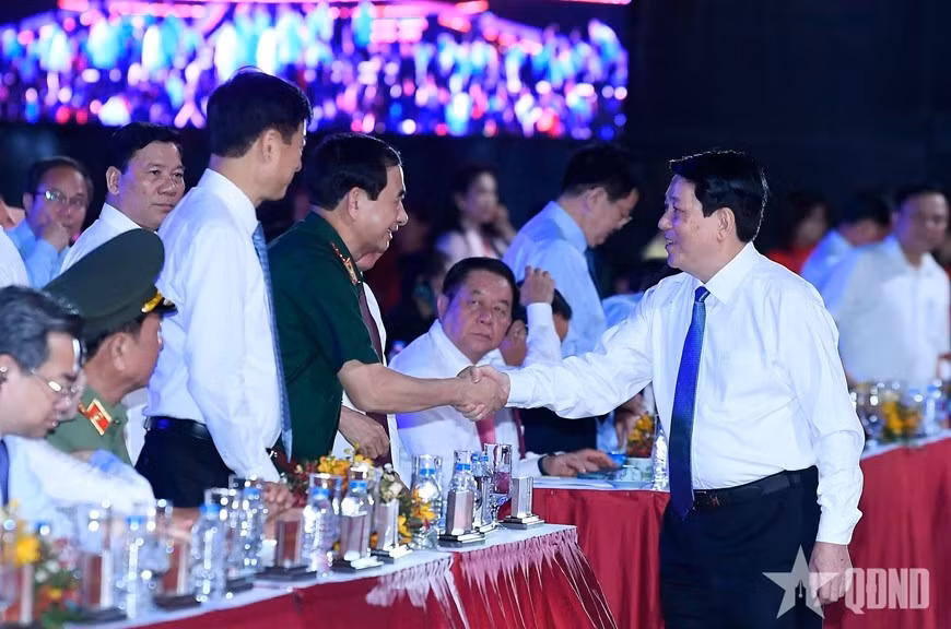 Chủ tịch nước Lương Cường với các đại biểu tại chương trình.