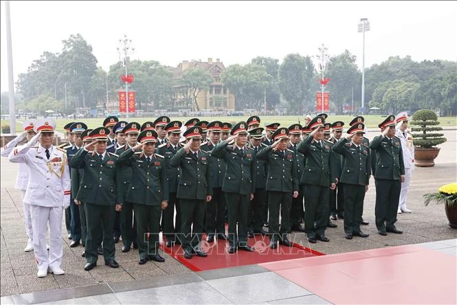 Đoàn đại biểu Quân uỷ Trung ương và Bộ Quốc phòng đặt vòng hoa, vào Lăng viếng Chủ tịch Hồ Chí Minh. Ảnh: Doãn Tấn/TTXVN