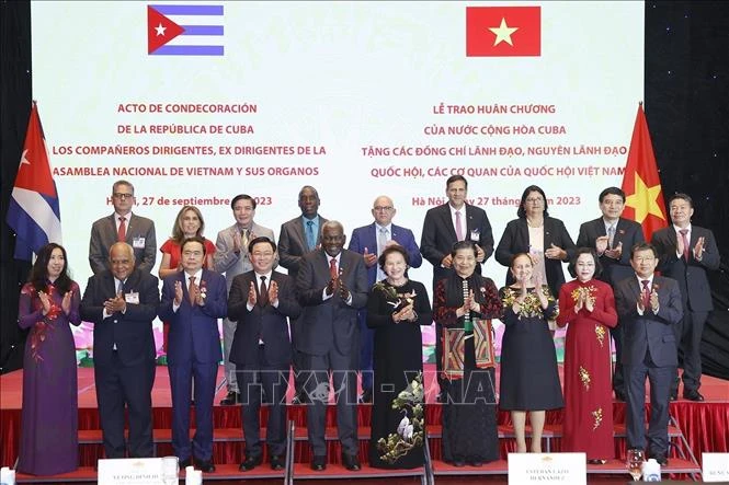 Tại buổi lễ, Chủ tịch Quốc hội Cuba Esteban Lazo Hernandez trân trọng trao Huân chương Carlos Manuel de Cesesspespeedes tặng Chủ tịch Quốc hội Vương Đình Huệ; trao Huân chương Ana Betancour tặng nguyên Chủ tịch Quốc hội Nguyễn Thị Kim Ngân; trao Huân chương Đoàn kết tặng Phó Chủ tịch Thường trực Quốc hội Trần Thanh Mẫn và nguyên Phó Chủ tịch Thường trực Quốc hội Tòng Thị Phóng.
