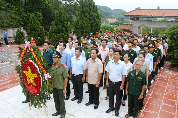 | Đồng chí Vũ Xuân Cường dâng hương Đài tưởng niệm liệt sỹ Mỏ đồng Sin Quyền. |