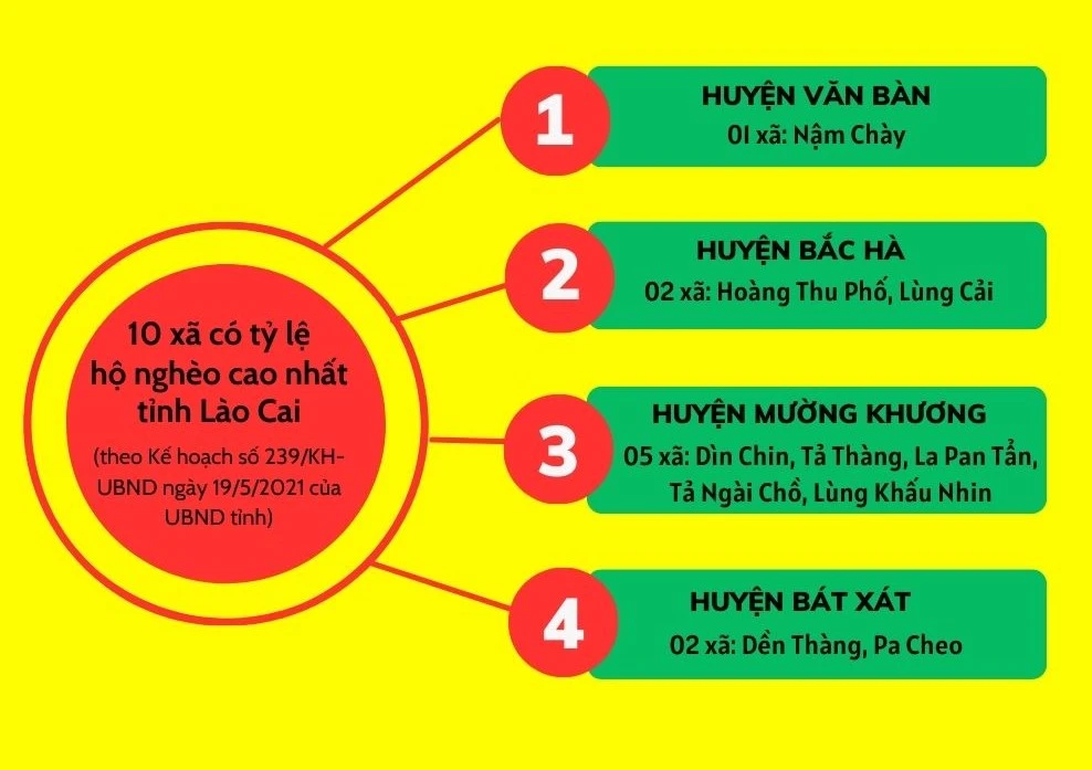 10 xã/4 huyện có tỷ lệ hộ nghèo cao nhất tỉnh Lào Cai.
