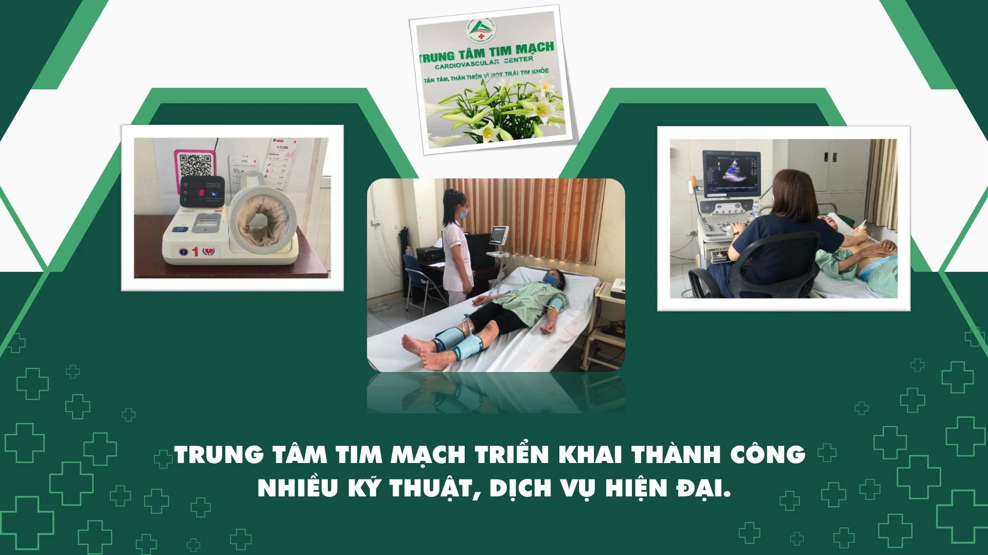 Cùng với Trung tâm Ung bướu và Y học hạt nhân, Trung tâm Tim mạch cũng đã triển khai thành công nhiều kỹ thuật, dịch vụ như siêu âm tim qua thực quản, laser nội mạch điều trị suy tĩnh mạch chi dưới, đặt máy tạo nhịp tạm thời, sốc điện cấp cứu, chuyển nhịp, chọc dịch màng ngoài tim, đặt catheter tĩnh mạch trung tâm… Nhờ đó, nhiều bệnh nhân nặng đã được can thiệp kịp thời, điều trị hiệu quả, không phải chuyển tuyến. Trong thời gian tới, trung tâm sẽ tiếp nhận và đưa vào sử dụng máy chụp cắt lớp vi tính CT-Scanner 768 lát cắt và hệ thống chụp mạch DSA.