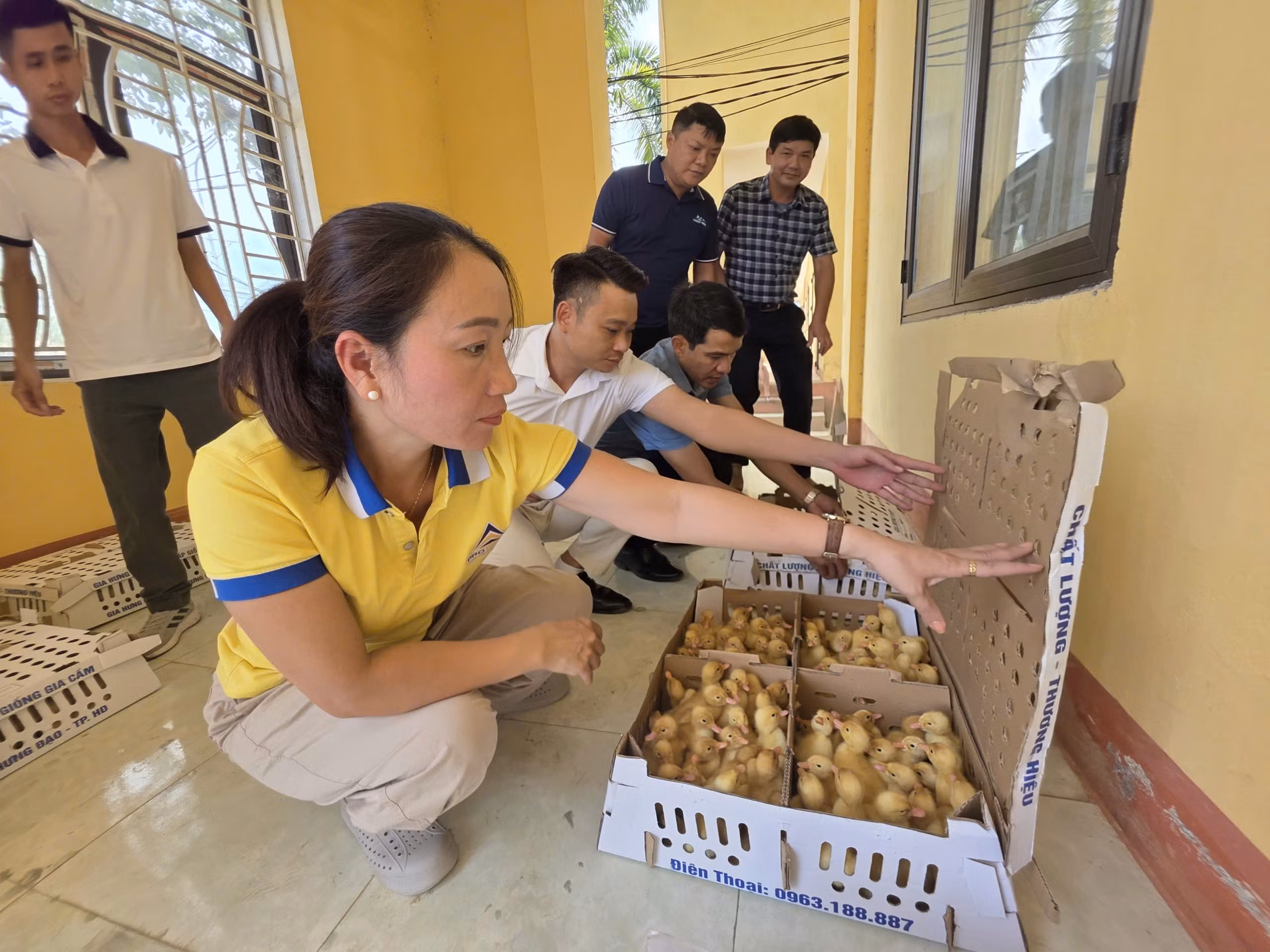 Ông Ngọc chia sẻ: “Chúng tôi không chỉ muốn hỗ trợ trước mắt mà còn mong bà con khôi phục sản xuất lâu dài. Vịt dễ nuôi, lớn nhanh, phù hợp với địa hình suối và ruộng bậc thang ở Việt Hồng. Nếu chăm tốt, chỉ sau ba tháng là có thu nhập”.