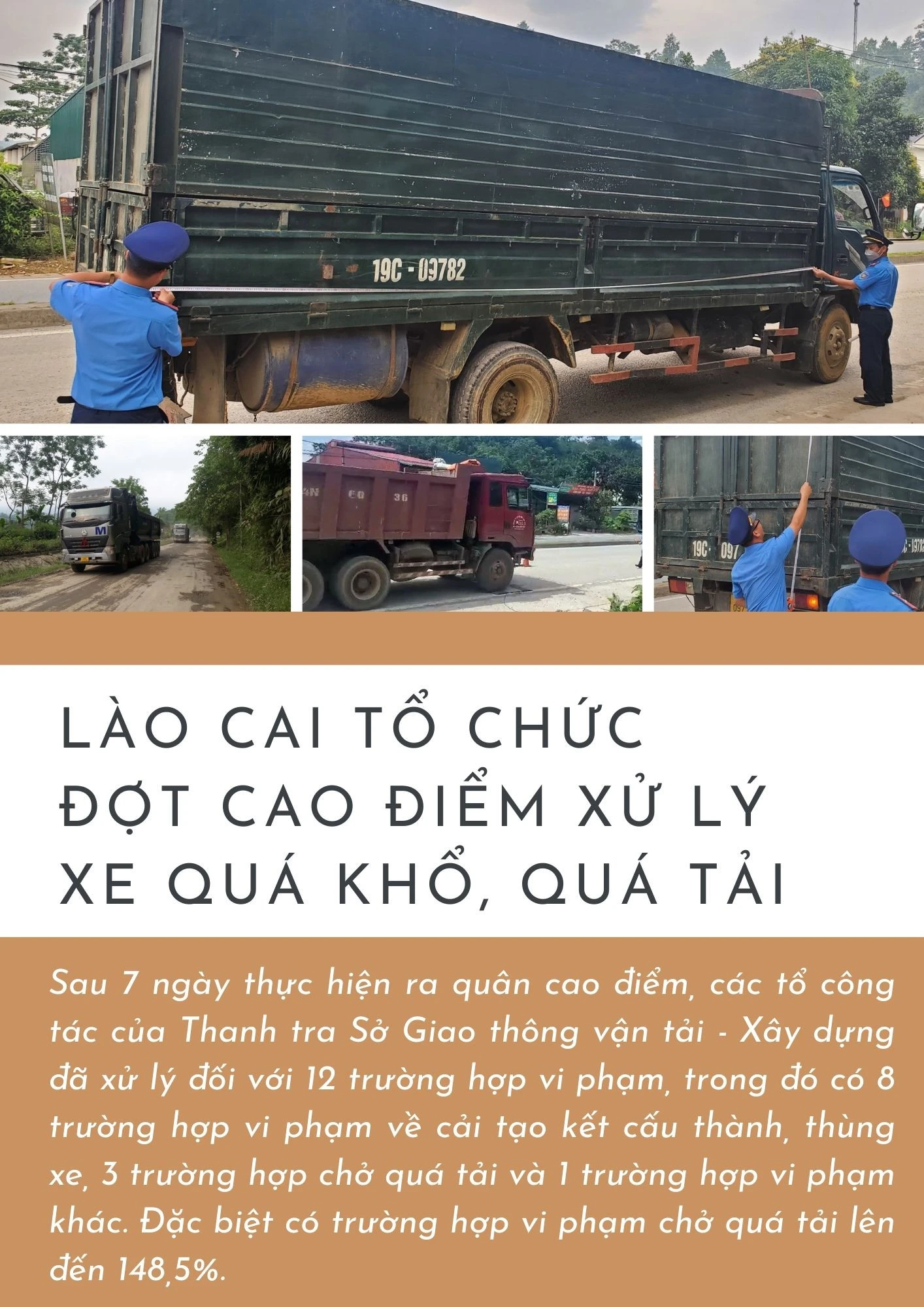 Trong quá trình triển khai thực hiện, Thanh tra Sở Giao thông vận tải - Xây dựng đã bố trí 2 đội, thực hiện việc kiểm tra tải trọng, kích thước thành thùng xe. Địa bàn tập trung kiểm tra là thành phố Lào Cai, thị xã Sa Pa và các huyện Bảo Thắng, Bát Xát, Văn Bàn, Bắc Hà, Bảo Yên. Đặc biệt là các tuyến quốc lộ, tỉnh lộ, đường huyện, đường xã và đường chuyên dùng có nhiều phương tiện xe ô tô hoạt động như Quốc lộ 279, Quốc lộ 4E, Quốc lộ 70, Tỉnh lộ 151, Tỉnh lộ 156…