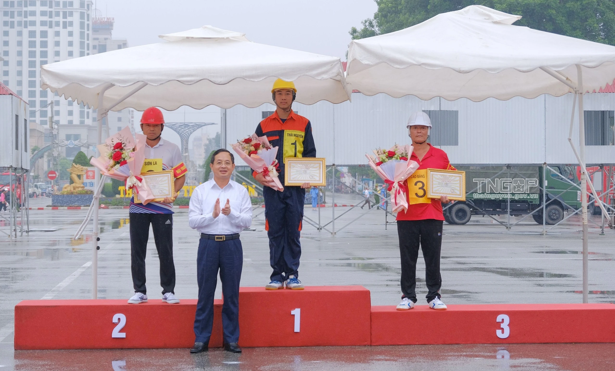 Ban tổ chức trao giải lần lượt Nhất, Nhì, Ba toàn đoàn cho đội thi của tỉnh Thái Nguyên, Cao Bằng và Sơn La.