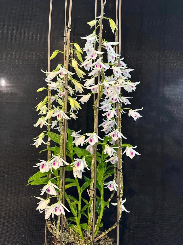 Chậu lan var 5 cánh trắng Phú Thọ đang nở hoa được chào giá 1,8 triệu đồng.