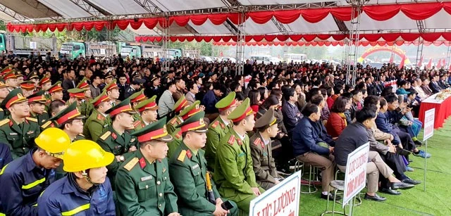 Đông đảo cán bộ, lực lượng vũ trang và nhân dân tham dự sự kiện