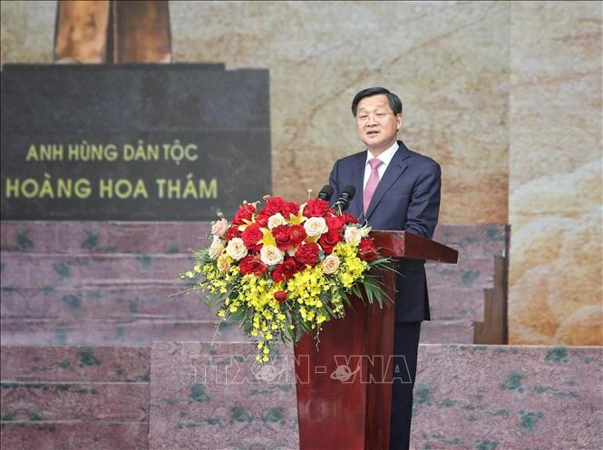 Phát biểu tại buổi lễ, thay mặt lãnh đạo Đảng, Nhà nước, Phó Thủ tướng Chính phủ Lê Minh Khái thể hiện sự tưởng nhớ, tri ân vị thủ lĩnh áo vải Hoàng Hoa Thám - Đề Thám, Anh hùng dân tộc, cùng các nghĩa quân nông dân kiên cường, bất khuất trong suốt 30 năm chống lại thực dân Pháp để bảo vệ non sông, đất nước.