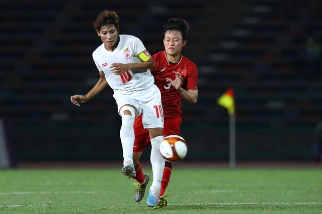 Tuyển nữ Myanmar chơi rắn và quyết tâm nhưng không thể làm khó nữ Việt Nam.