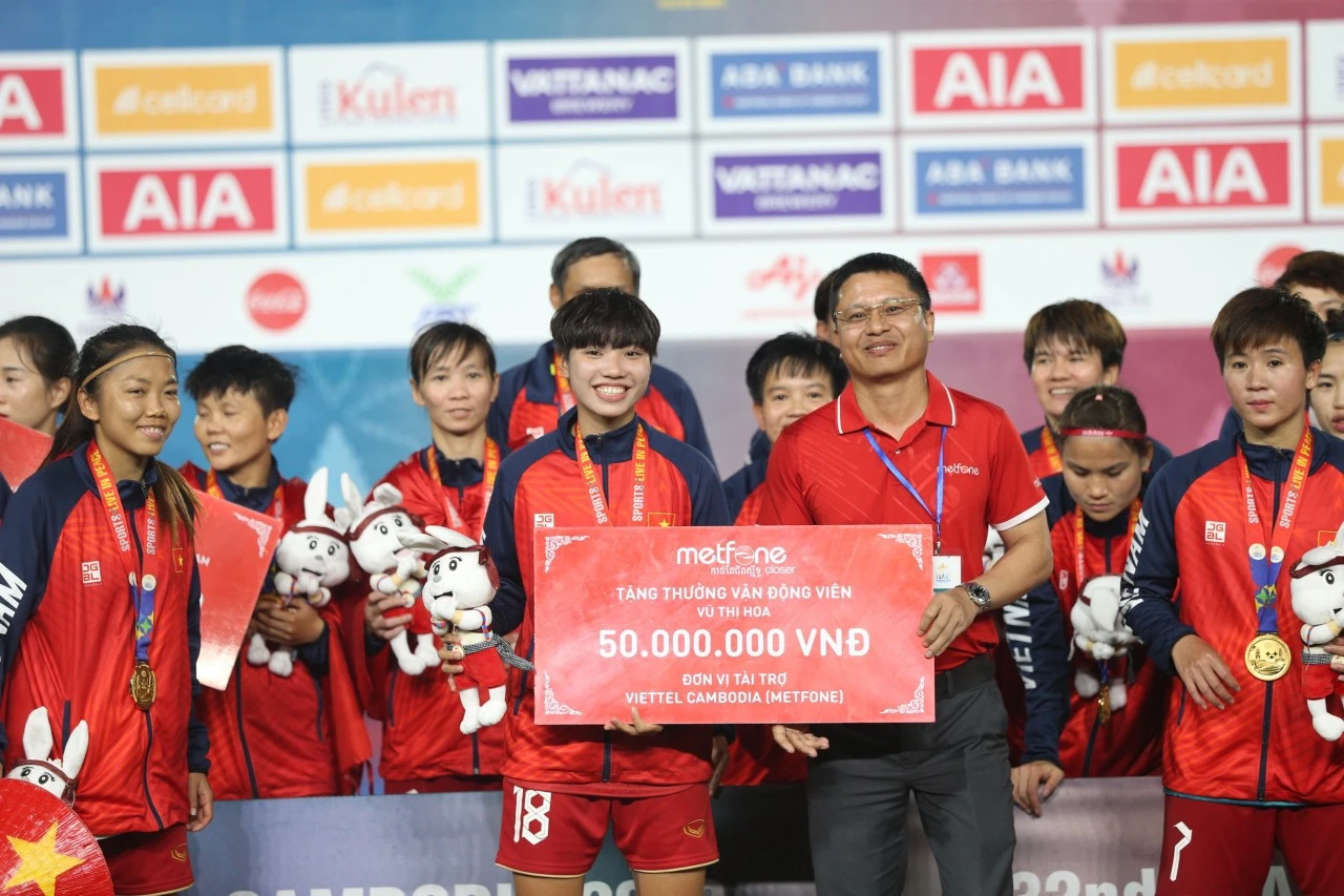 Tổng giám đốc Cao Mạnh Đức thay mặt Viettel Campuchia (Metfone) tặng 200 triệu đồng cho tuyển nữ Việt Nam, tặng thêm cho nữ cầu thủ có gia cảnh khó khăn, Vũ Thị Hoa, 50 triệu đồng. Ngoài ra, Metfone còn tặng 50 triệu đồng cho võ sĩ boxing Hà Thị Linh cũng có hoàn cảnh khó khăn.