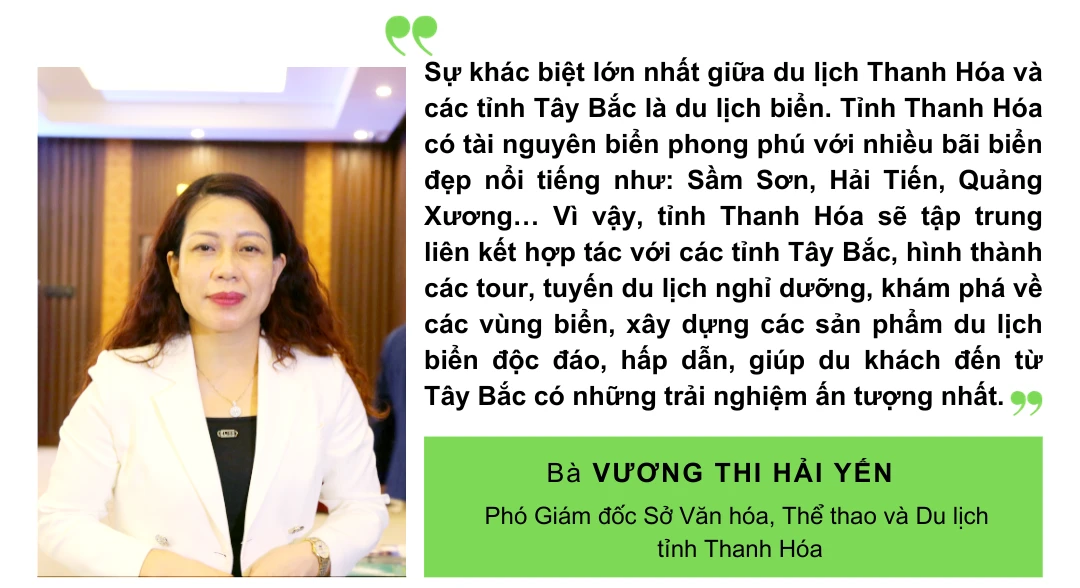 Phát biểu chỉ đạo tại hội nghị, đồng chí Phạm Văn Thủy, Phó Cục trưởng Cục Du lịch Quốc gia Việt Nam đề nghị các địa phương xác định rõ sản phẩm du lịch đặc thù để xây dựng các sản phẩm du lịch mới, độc đáo, hấp dẫn; nghiên cứu cơ chế liên kết hợp tác chặt chẽ giữa Thanh Hóa và Tây Bắc, tạo động lực trao đổi khách, dẫn dắt phát triển du lịch vùng. Bên cạnh đó, các doanh nghiệp và báo chí sát cánh, đồng hành trong việc xây dựng, phát triển sản phẩm du lịch.