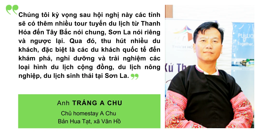 Phát biểu tại hội nghị, đồng chí Tráng Thị Xuân, Phó Chủ tịch Thường trực UBND tỉnh Sơn La, đánh giá cao những tiềm năng thiên nhiên, văn hóa và du lịch của Thanh Hóa. Hiện nay, tỉnh Sơn La đang nỗ lực triển khai các giải pháp nhằm hiện thực hóa mục tiêu đưa du lịch Sơn La trở thành điểm đến an toàn, hấp dẫn vùng Tây Bắc, Sơn La mong muốn Hội nghị này sẽ là cơ hội để các tỉnh liên kết hợp tác hình thành các tour, tuyến du lịch liên địa phương, liên vùng, xây dựng các sản phẩm du lịch hấp dẫn, đóng góp vào sự phát triển chung của ngành du lịch.