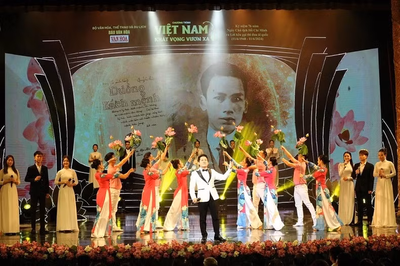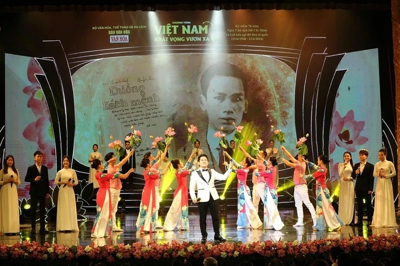 “Việt Nam - Khát vọng vươn xa” gồm 3 nội dung “Người đi tìm hình của nước”, “Lời kêu gọi ái quốc”, “Kiến thiết và xây dựng Tổ quốc”, đã tạo nên không gian nghệ thuật với nhiều cung bậc cảm xúc mà mạch nguồn là tình yêu quê hương đất nước, khát vọng cống hiến, sự biết ơn, tình cảm với Bác Hồ kính yêu.