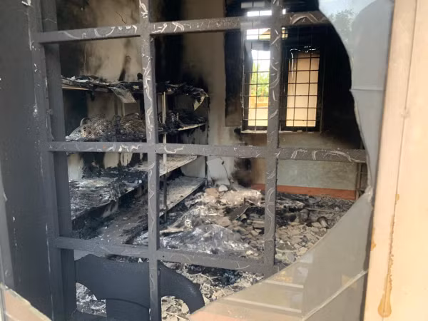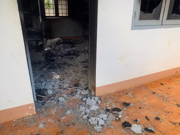 Trụ sở dân quân tự vệ xã Ea Ktur bị đập phá, đốt.