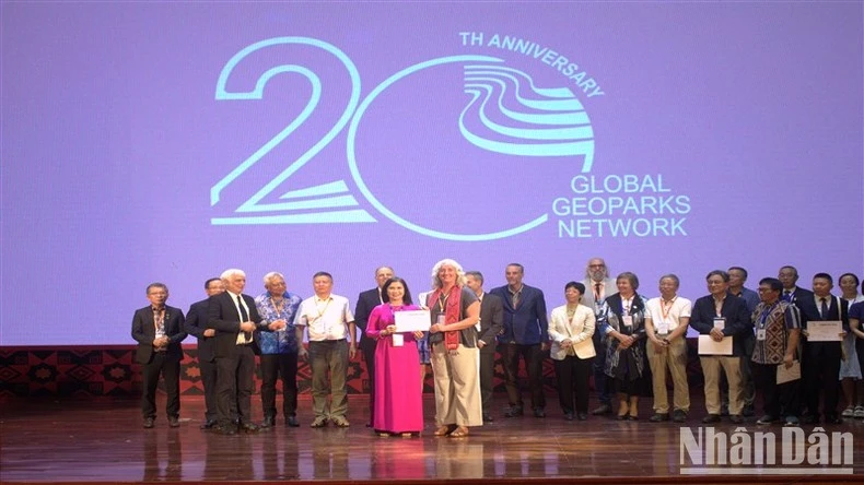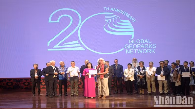 Ban Tổ chức trao Giấy chứng nhận cho các thành viên có nhiều đóng góp cho sự phát triển của Mạng lưới Công viên địa chất toàn cầu UNESCO.